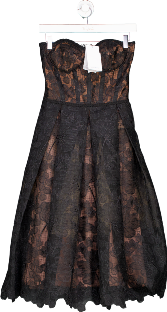 MISHA COLLECTION Black Crepe Strapless Midi Pencil Dress UK 10