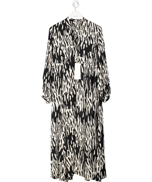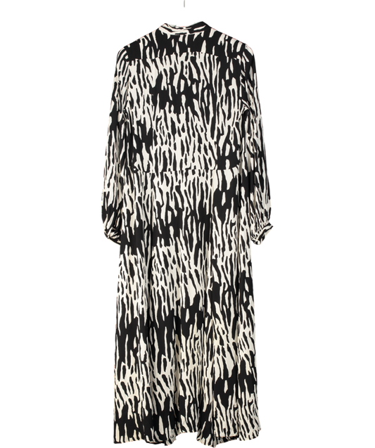 Whistles Black Back & White Floral V-neck Fit & Flare Mini Dress UK 10
