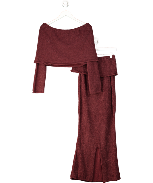 Very Brown Cable Textured Long Sleeve Roll Neck Top And Skirt Co-ord UK XL