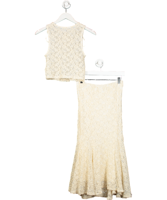 COMMENSE 2-piece Cream Bow Detail Sequined Jacket And Skirt Set UK S COMMENSE 2-piece Cream Bow Detail Sequined Jacket And Skirt Set UK S