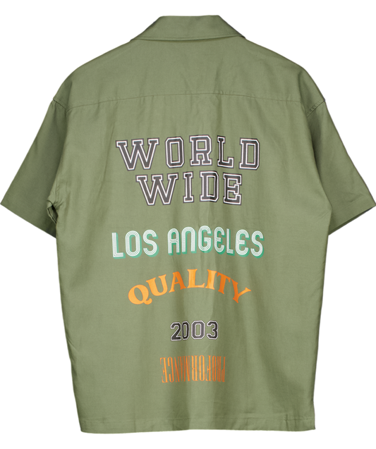 MANGO Dark Khaki Green Bowling Collar Shirt UK S