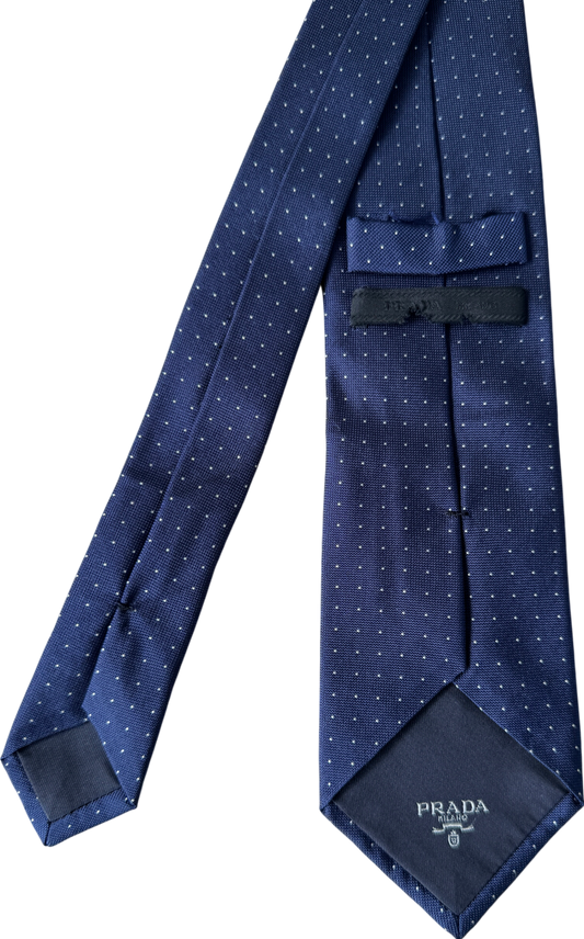 Prada Blue 100% Silk Polka Dot Tie One Size