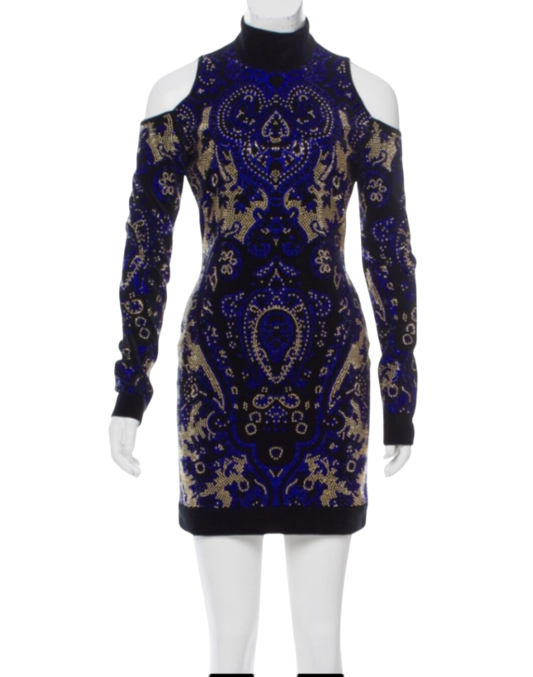 Balmain Black Cutout Crystal Embellished Velvet Mini Dress UK 8
