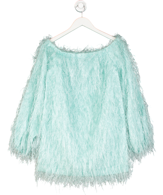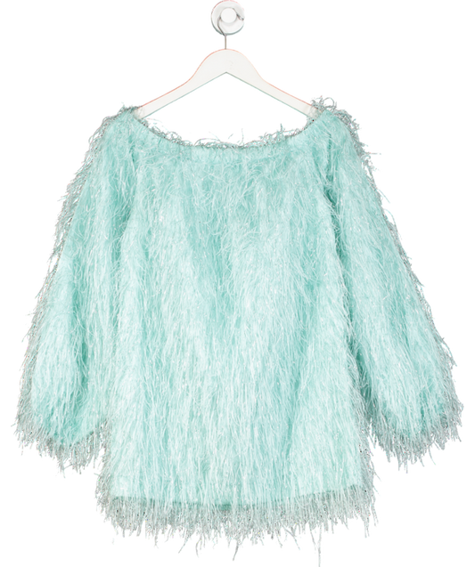 Rotate Birger Christensen Blue Gloria Off Shoulder Feather Dress UK 8