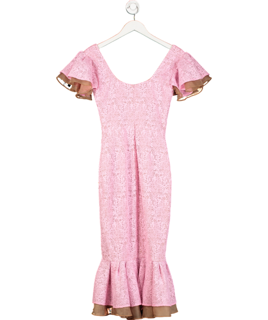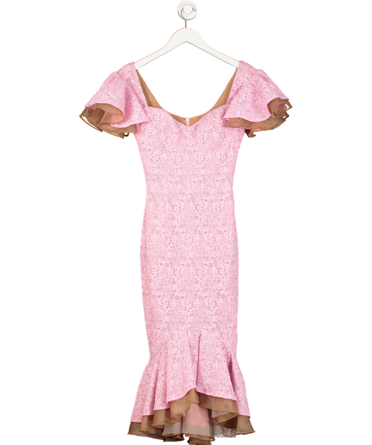 Self Portrait Pink embroidered lace Tiered Mini Dress UK 6