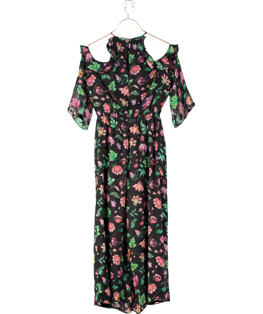 Rachel Zoe Black Floral Print Cold-shoulder Silk Jumpsuit UK 8