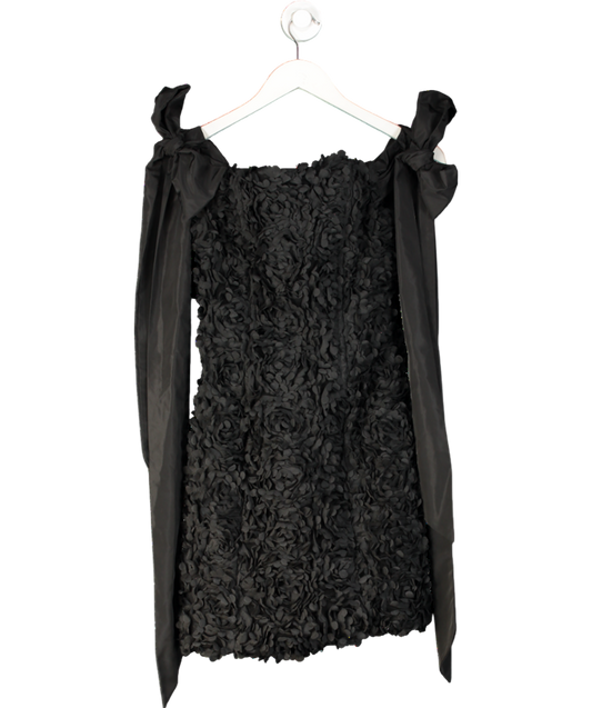 Karen Millen Black Textured Rosette Bow Sleeve Mini Dress UK 8