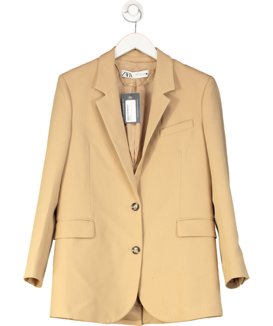 Massimo Dutti Beige Camel Cotton Waffle Blazer UK M