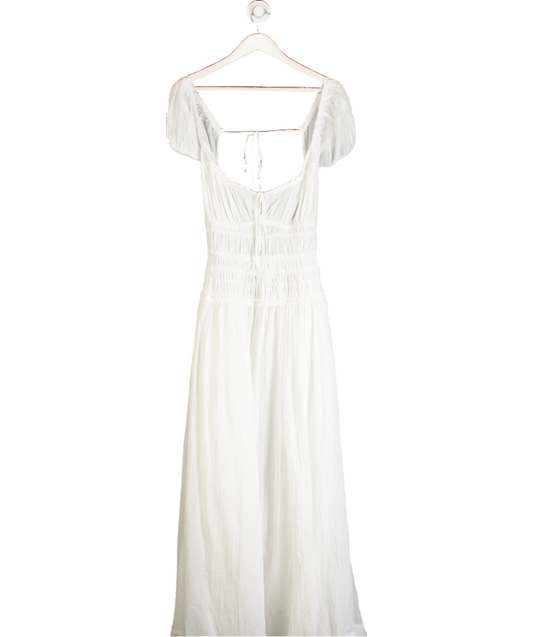 BOA White Ruched Cotton Maxi Dress UK XS -