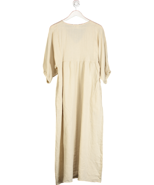 Beulah London Cream Floral Embroidered Silk Button Down Dress UK S