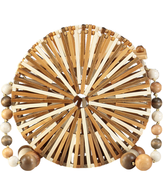 YOSUZI White / Grey Woven Beaded Handle Bag