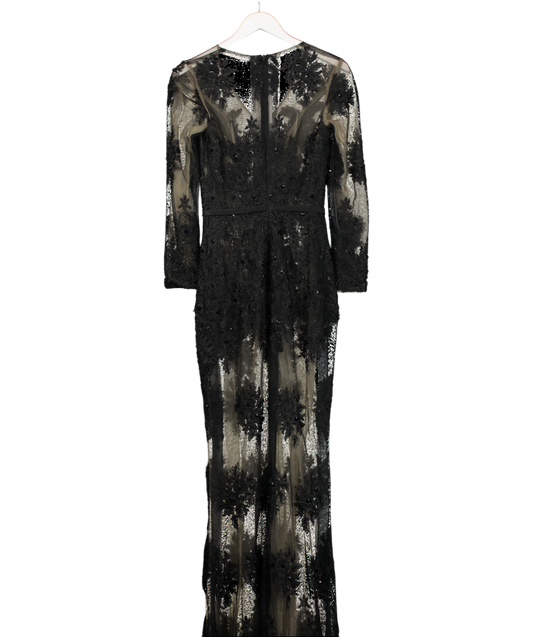 Mimi Black Lace Beaded Floral Long Sleeve Maxi Gown Dress UK XS/S