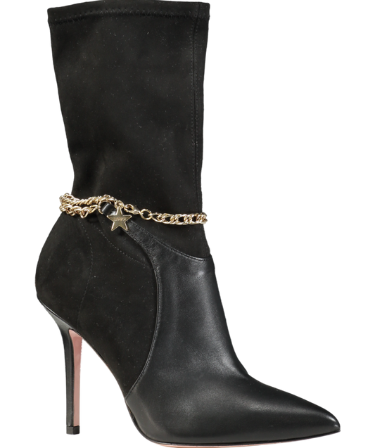 LUI JO Marilyn 5 Black Leather & Suede Boots With Gold Star And Chain Detail UK 5 EU 38 👠 LUI JO Marilyn 5 Black Leather & Suede Boots With Gold Star And Chain Detail UK 5 EU 38 👠