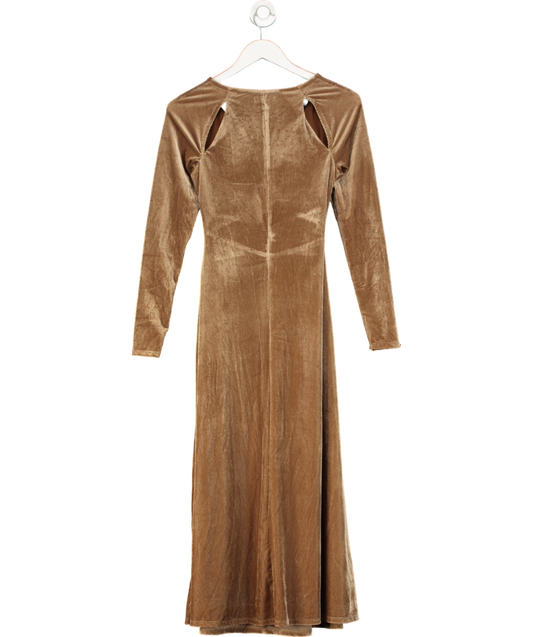 AFRM Cala Ribbed Cutout Long Sleeve Velvet Midi Dress - Brown UK XS AFRM Cala Ribbed Cutout Long Sleeve Velvet Midi Dress - Brown UK XS