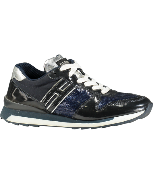 HOGAN Blue Navy Patent "H" Logo Sequin Trimmed Trainers UK 4.5 EU 37.5 👠