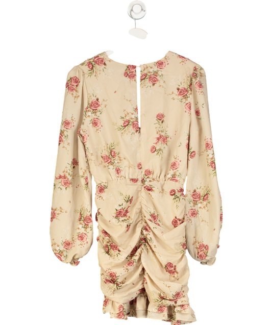 En Saison Beige Floral Ruched Side Mini Dress UK XS