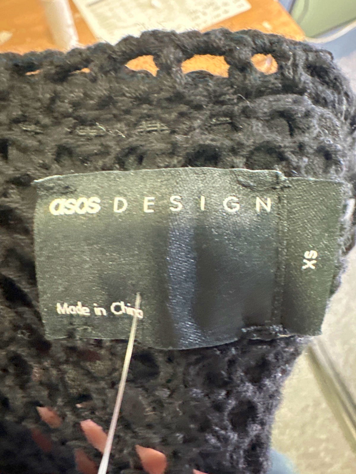 This stylish black crochet maxi dress from ASOS is perfect for a chic and elegant look. The dress features delicate ruffles and a comfortable maxi length, making it ideal for both casual outings and special occasions. Tailored to fit a UK XS size, it ensures a flattering and comfortable fit.