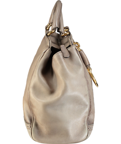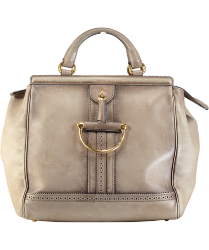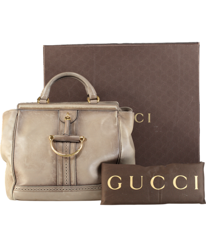 Comes in original dust bag and Box. Known for its high standard and fine finish, this handbag from Gucci will be your companion for years to come. This stunning bag has been crafted in Italy and made of leather. It comes in a lovely shade of taupe. It is held by dual handles, features a spacious fabric-lined interior, brogue detailing on the exterior, signature Horsebit detailing and protective metal feet. It will elevate your outfits instantly. Serial number 296900 002123. Some marks to interior.