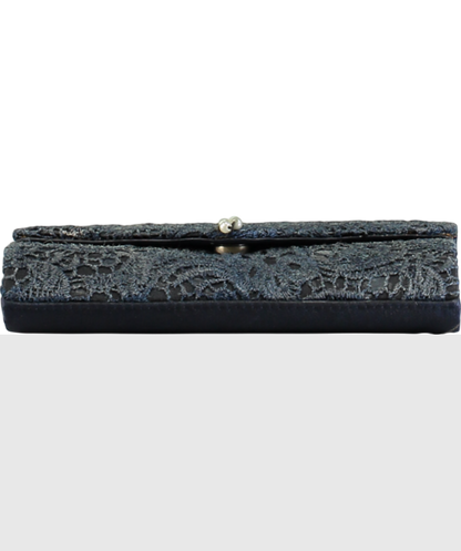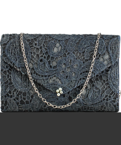 Blue Crochet Lace Pearl Clutch Bag