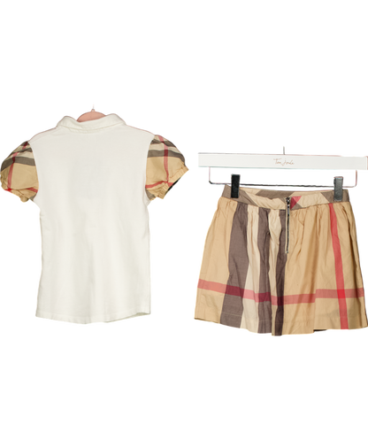 Burberry Beige Polo Shirt With Puff Checked Sleeves And Checked Cotton Skirt 6 Years
