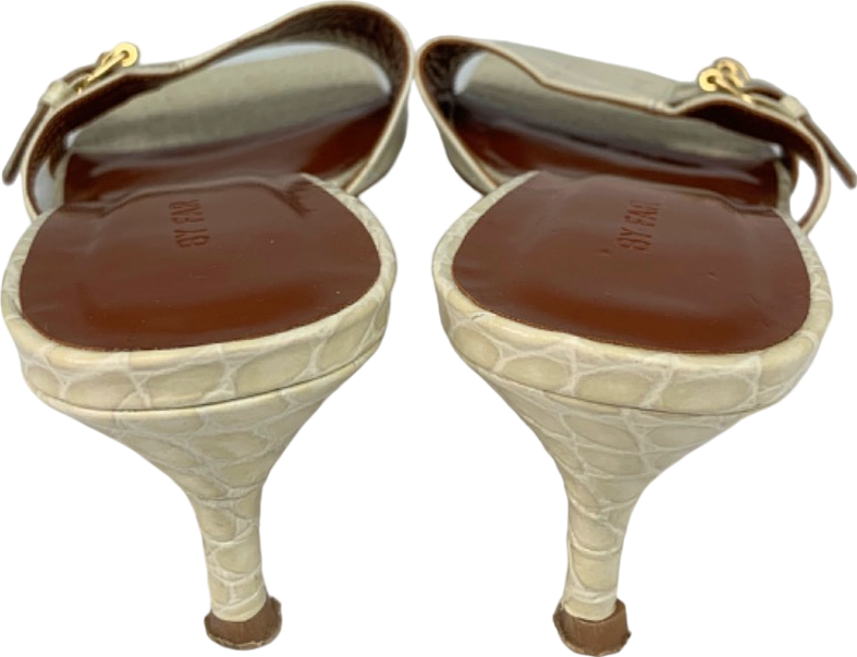 Discover timeless elegance with these By Far White Croc-Effect Leather Sandals. Featuring a sophisticated croc-embossed design and square toe, these sandals are perfect for making a statement. The mid-height heels provide comfort without compromising on style. Ideal for both casual and formal occasions.