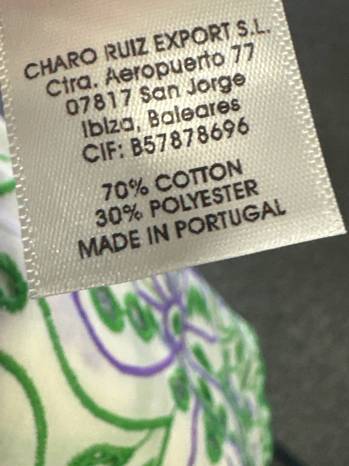 Discover the perfect addition to your summer wardrobe with the Charo Green and White Floral Pattern Skirt. This stylish mini skirt features intricate green and purple floral patterns that are sure to brighten up any outfit. Designed by Charo, a reputable brand known for its high-quality fashion items, this skirt is both fashionable and comfortable. Made from a blend of cotton and polyester, it ensures durability and a smooth finish. Ideal for casual outings or beach vacations, this skirt is a must-have for the fashion-forward individual.