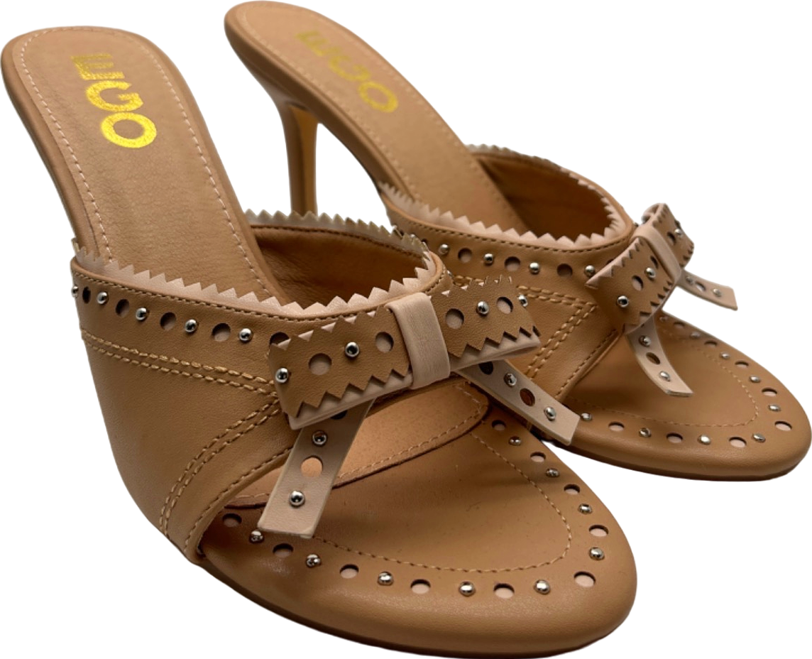 Step out in style with these chic Ego Tan Heeled Mules, perfect for adding a touch of sophistication to any outfit. Featuring stylish rivet details and a unique cut-out bow design, these mules are both fashionable and comfortable. Ideal for both casual and formal occasions, these heels are a must-have in your wardrobe.