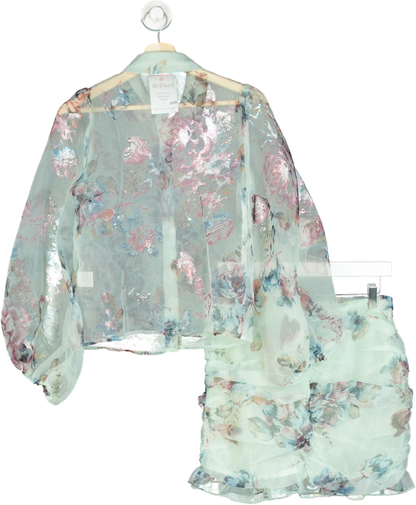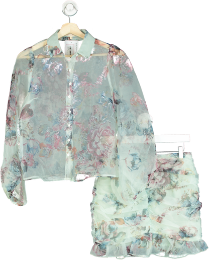 Fanco Pastel Floral Sheer Blouse and Ruffle Skirt Set UK S