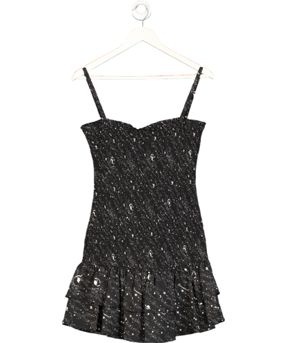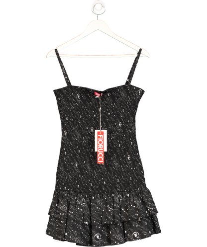 FIORUCCI Black Ruched Strappy Printed Dress UK 10