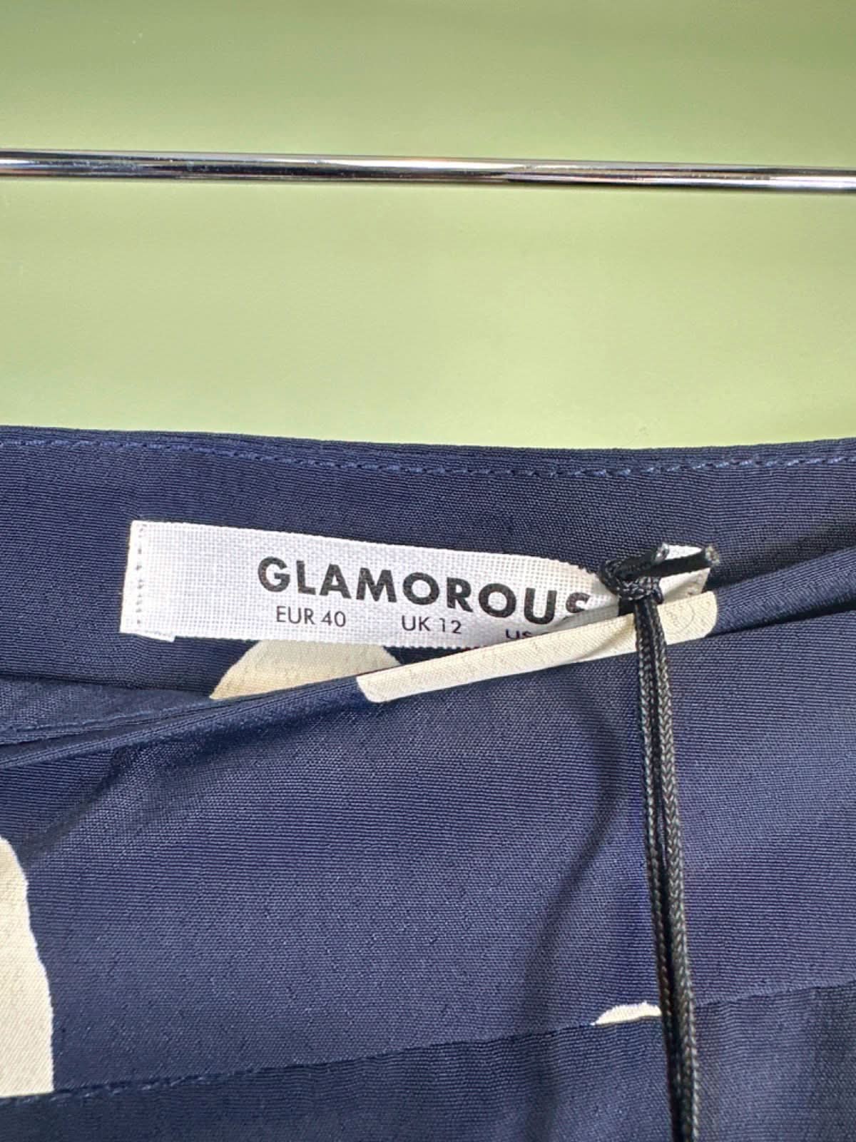Glamorous Navy Polka Dot Ruffle Trim Wrap Skirt Size 12