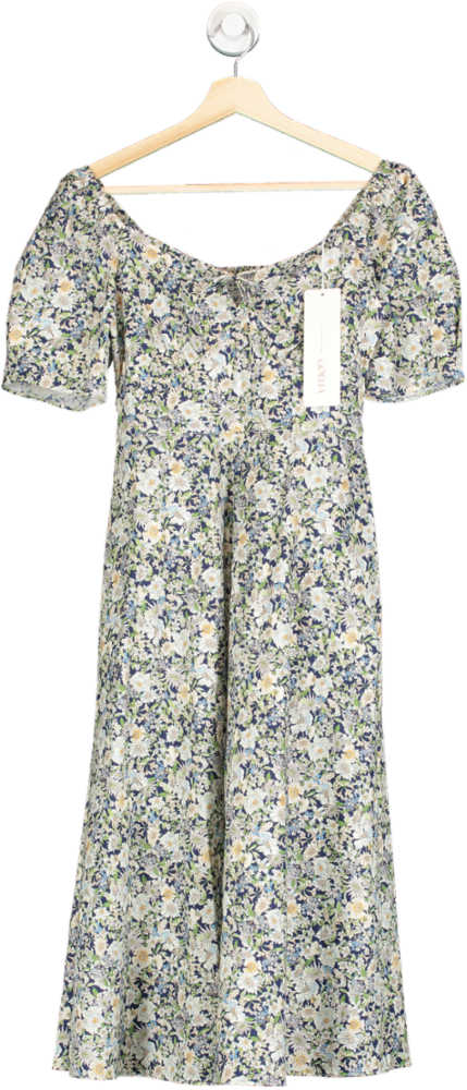 Goelia Blue Serene Garden Print Woven Midi Dress UK XS