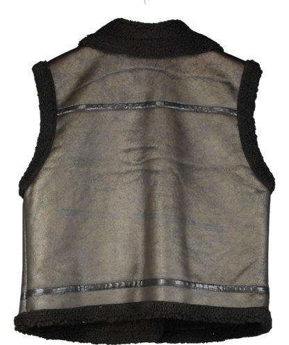 Faux Leather & Shearling Gilet - H&M - Black - UK L