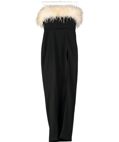 Fall in love with this super glamorous and elegant 'Sarai' dress. It's cut from stretch crepe and fully lined for a smooth finish. It's super flattering and hugs the curves in all the right places and the feather trim adds that touch of glam and luxury. It features internal boning to the bodice to provide incredible support and an ultra cinching effect. It zips up at the back and the ankle length cut is super flattering with a dramatic split to add that flirtatious element.