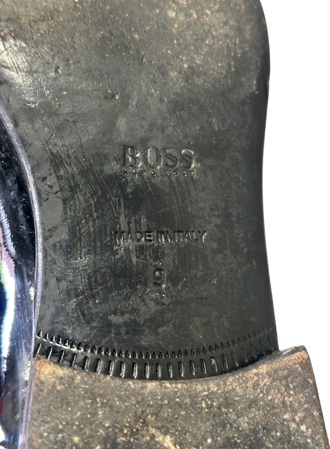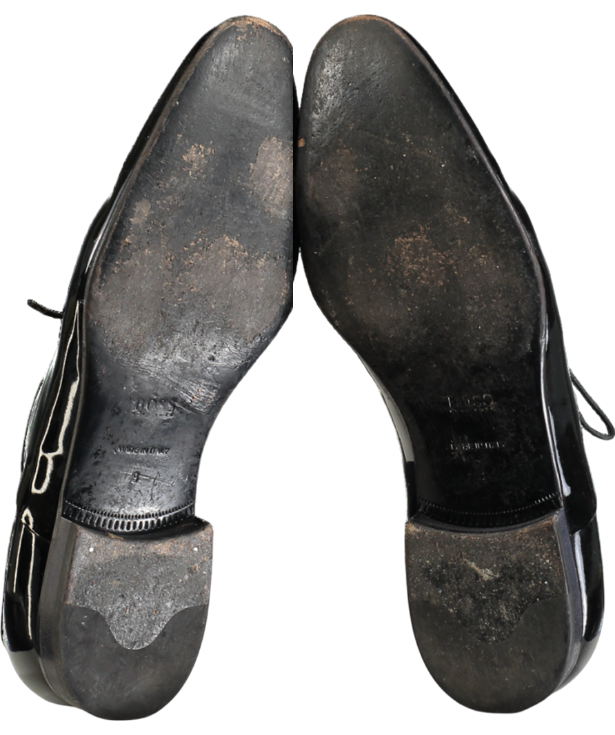 Hugo Boss Black Oxford Shoes In Patent Leather With Grosgrain Piping UK 9 EU 43 👞