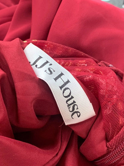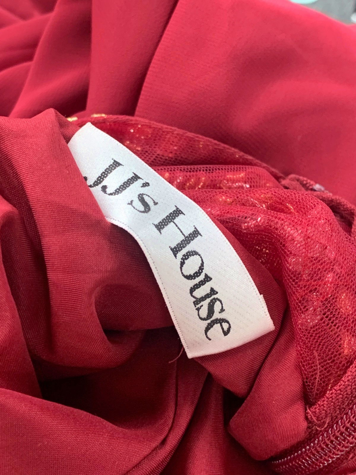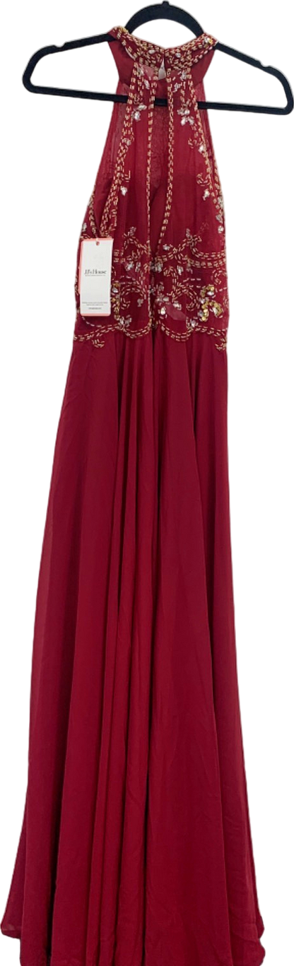 This elegant burgundy evening gown by JJ's House is a stunning choice for any formal occasion. The dress features intricate beadwork on the bodice and flows effortlessly into a full-length skirt, creating a striking silhouette. With its sophisticated halter neckline and back, this gown offers a perfect blend of classic elegance and modern style. Ideal for weddings, galas, and other formal events, it promises to make an unforgettable impression. The gown is new with tags, ensuring it arrives in pristine condition, ready for you to wear.