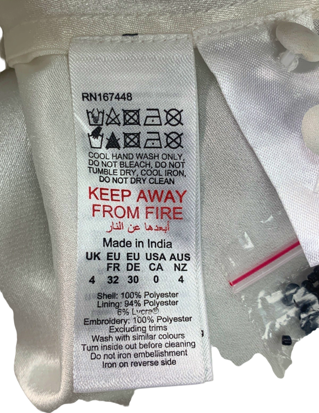 Karen Millen Ivory and Black Petite Baroque Applique Woven Mini Dress UK 4