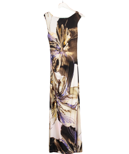 Elevate your style with the Ava Maxi Dress. Featuring a bold floral print washed in cream, purple and brown hues with its slim fit silhouette and elegant twisted off shoulder strap detailing. The asymmetric neckline and subtle ruching at the waist add an air of refinement. Perfect for your next cocktail event, style with a nude heel and allow the dress to create a statement. MAIN: 73% POLYESTER, 27% RECYCLED POLYESTER LINING: 95% POLYESTER, 5% ELASTANE