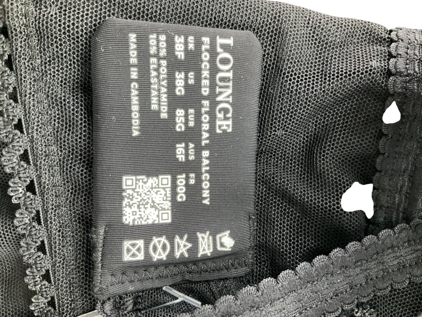 Lounge Underwear Black Flocked Floral Balcony Set UK 38G