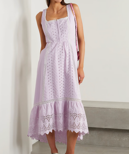 LoveShackFancy Lavender Alwyn crochet-trimmed broderie anglaise cotton-poplin midi dress UK XXS
