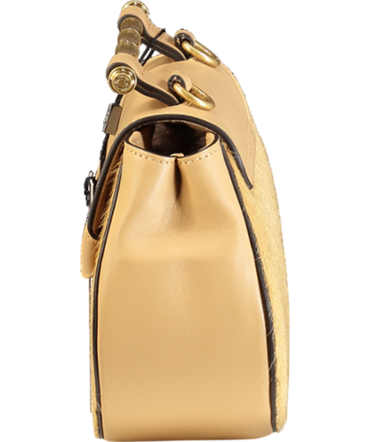 Marciano By Guess Beige Fur Detail Leather Shoulder Bag One Size