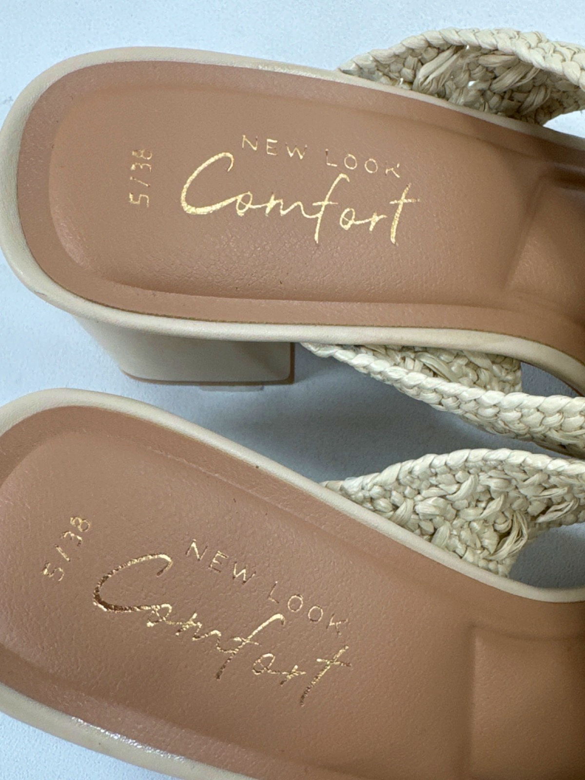 Step out in style with these lovely New Look beige heeled sandals. Featuring an elegant crochet design, these sandals provide both comfort and fashion. The heels are suitable for various occasions, whether casual or formal. Perfectly designed for those who love comfort without compromising on style.
