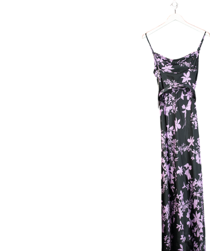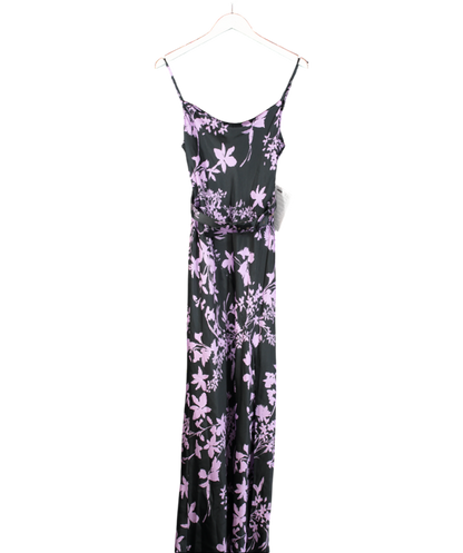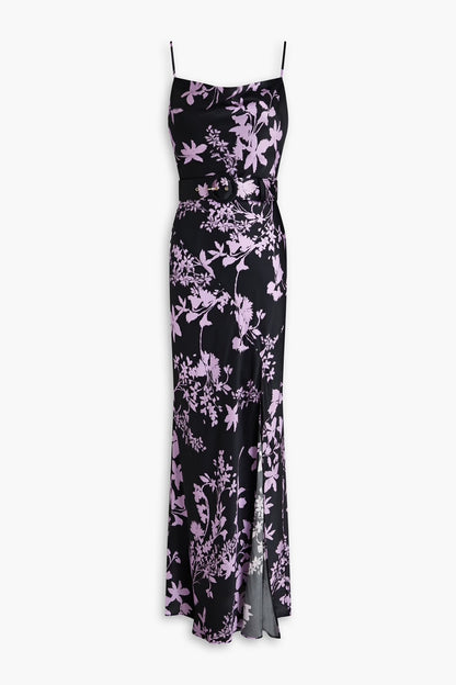 Simone Belted Floral Print Silk Satin Maxi Dress - Nicholas - Black - UK 6