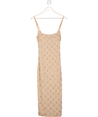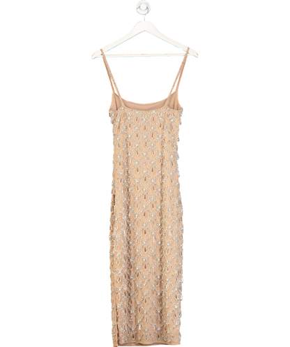 oceanus Nude Calliope Crystal Beaded Maxi Dress UK S