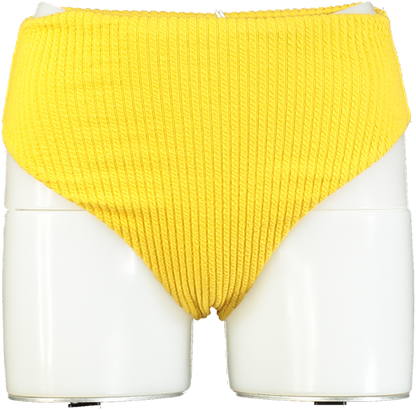 Elevate your swimwear collection with these vibrant yellow high-waisted ribbed bikini bottoms from Orfila Bee. The textured ribbed design and high-waist cut provide a flattering silhouette, making them a stylish and comfortable choice for the beach or poolside.