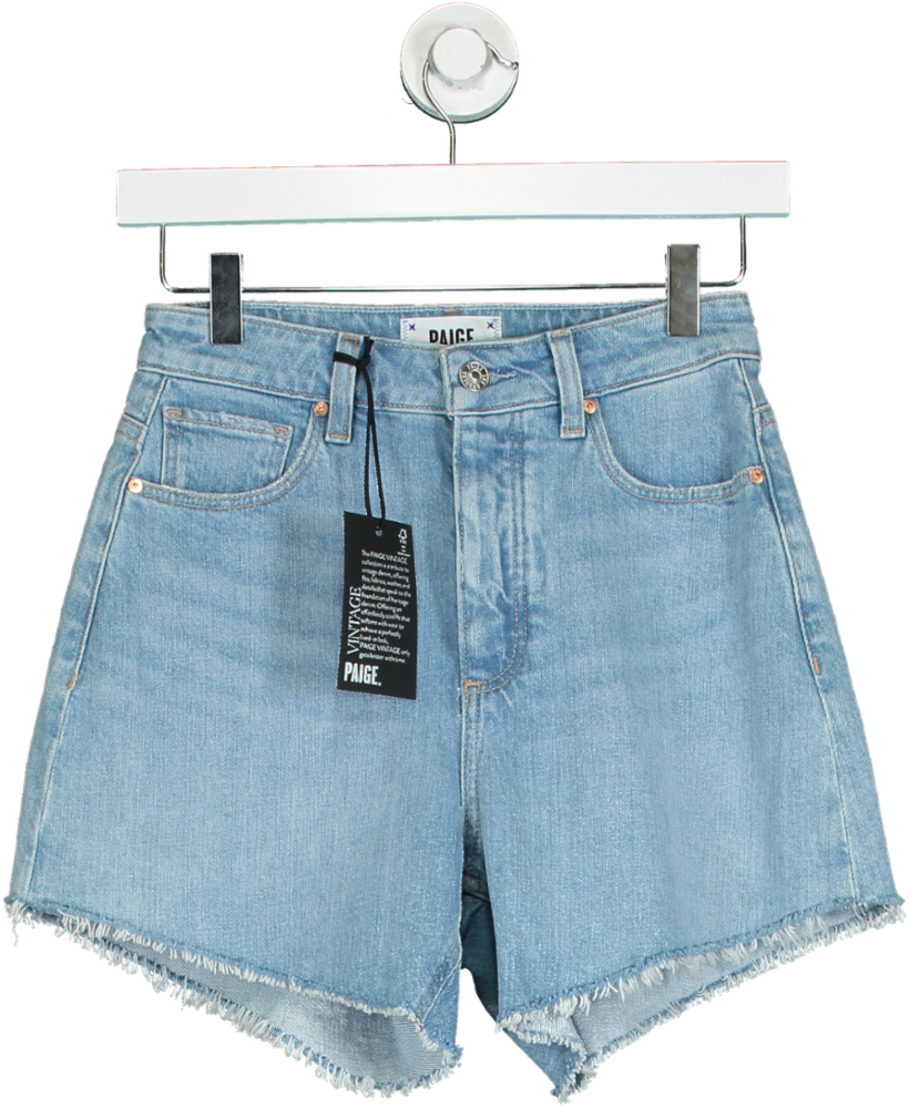 Step into summer with these stylish blue high-rise denim shorts by PAIGE. Crafted from premium materials, they offer both comfort and durability. The perfect addition to your casual wardrobe, these shorts feature a classic 5-pocket design and frayed hems, adding a touch of edge to your outfit.