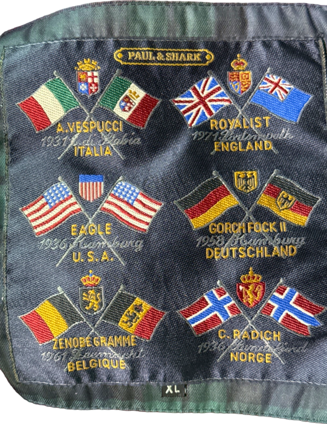 This Paul & Shark jacket is a stunning piece featuring intricate embroidered details on the front and back, showcasing various global flags and emblems. The Polartec fabric ensures climate control for optimal comfort in varying weather conditions. A perfect combination of style and function, this jacket is ideal for both casual and outdoor wear.