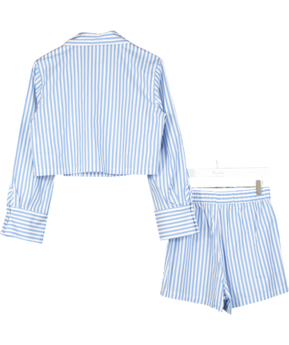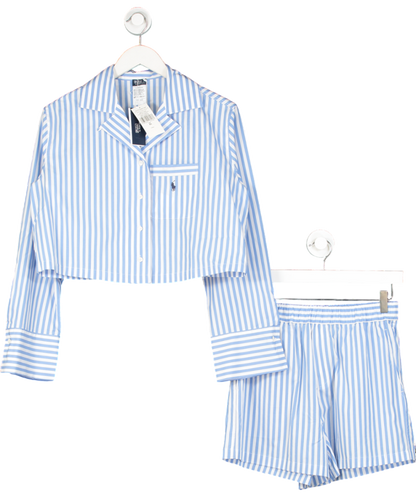 Polo Ralph Lauren Blue Shirting Stripes Wide Stripes Crop And Boxer Set UK XS