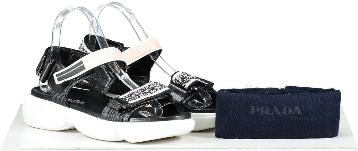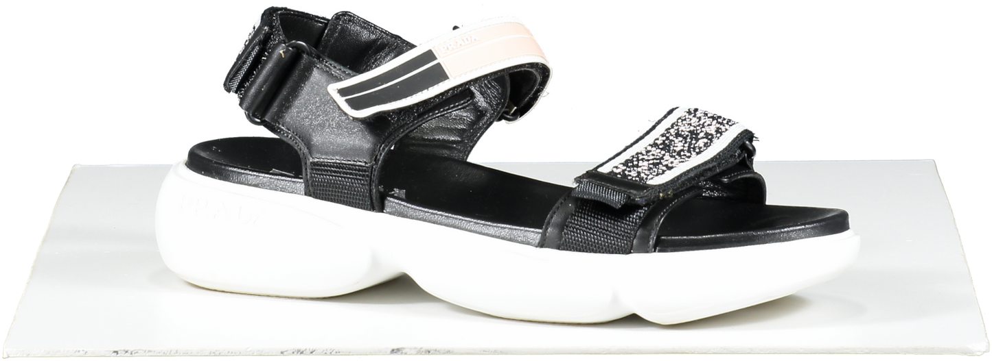 Prada Black Cloudbust Velcro Logo Sandals UK 6 EU 39 ๐