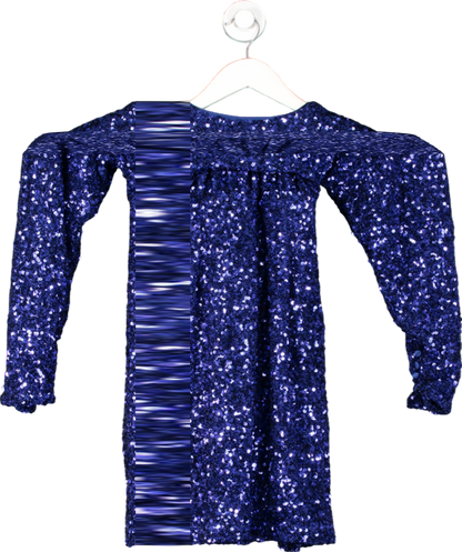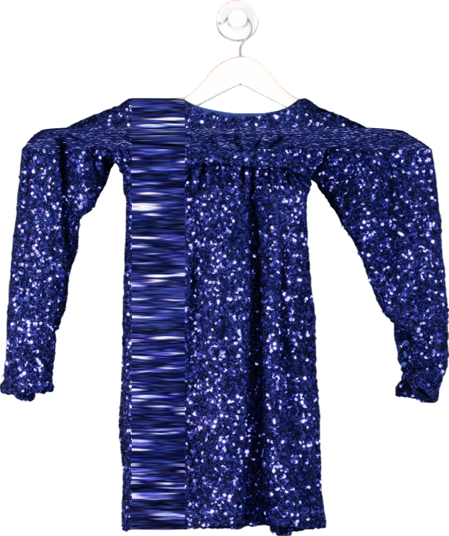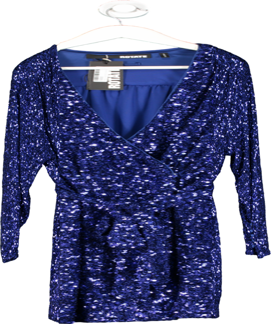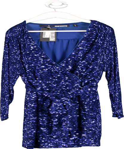 ROTATE Birger Christensen Blue Sequin Wide Shoulder Wrap Dress UK 10