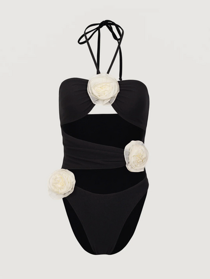 Rose Cut Out One Piece Swimsuit Black/cream - SAME - Black - UK S
